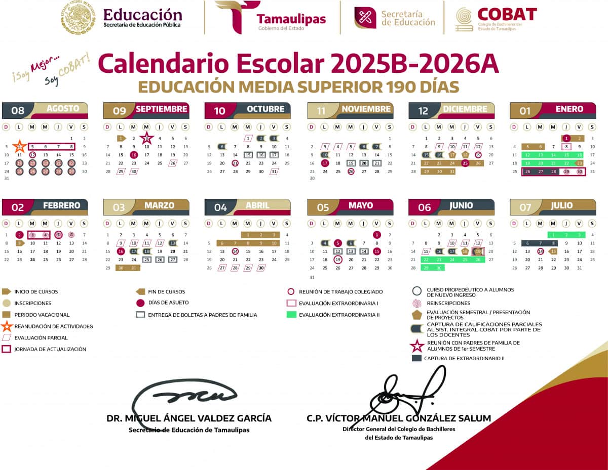 Descarga el Calendario Escolar 2025B-2026A