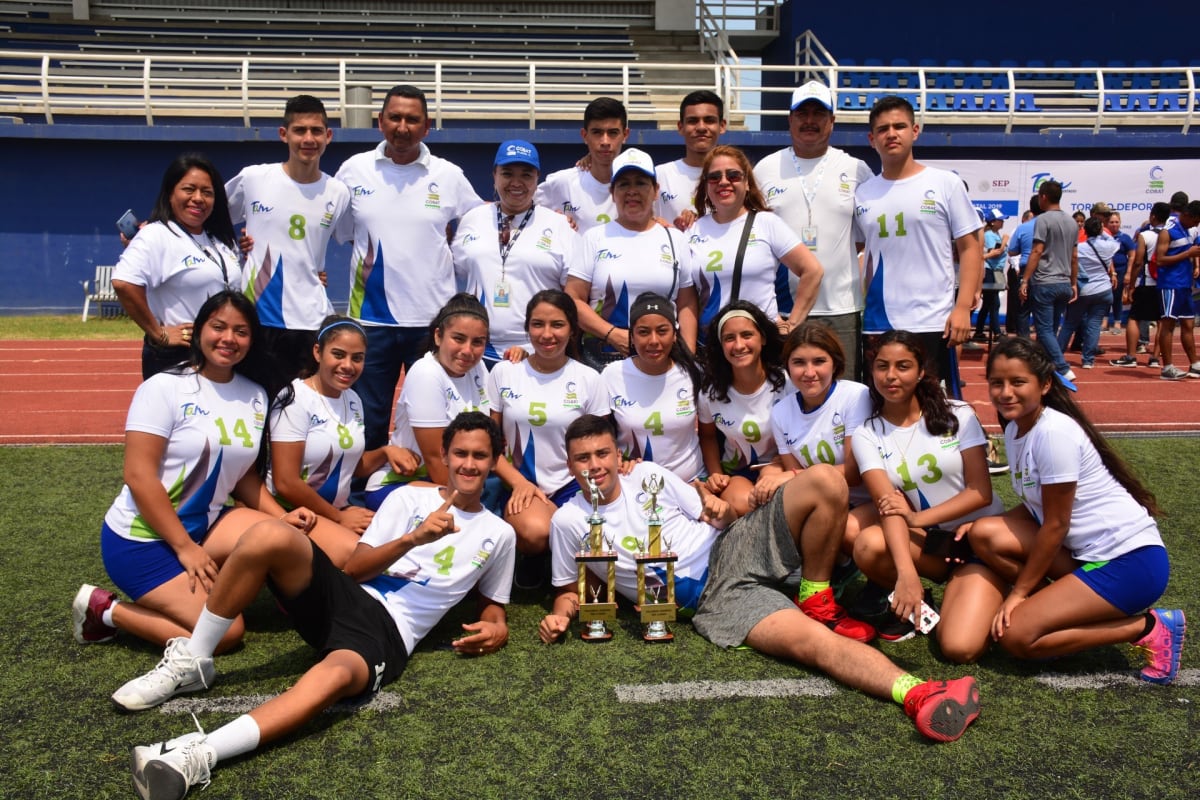 Los planteles campeones del Encuentro Deportivo Estatal COBAT 2019 son:
