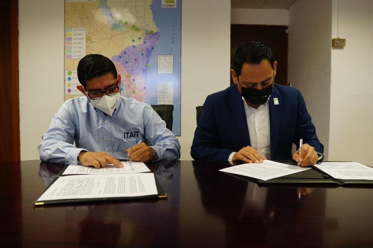 La firma se llevó a cabo en las oficinas de la Dirección General del COBAT, lugar a donde acudieron por parte del ITAIT, el Comisionado Presidente, Lic. Humberto Rangel Vallejo, la Comisionada, Lic. Dulce Adriana Rocha Sobrevilla y la Comisionada Lic. Rosalba Ivette Robinson Terán, mientras que por parte del Colegio de Bachilleres, el Director General, Mtro. Miguel Efrén Tinoco Sánchez y el Ing. Jesús Iván Romero Velázquez, Director Académico.