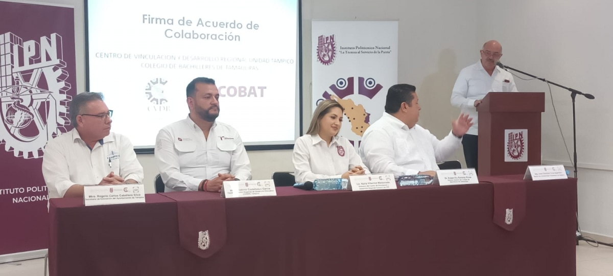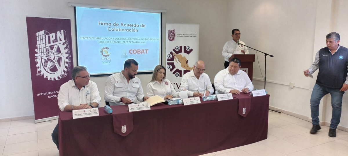 El documento fue signado en las instalaciones del IPN, a través del Centro de Vinculación y Desarrollo Regional Unidad Tampico, representado por su Directora, Lic. Karla Villareal Maldonado y por nuestro Director General, Dr. Rubén Ely Ramírez Rivas.