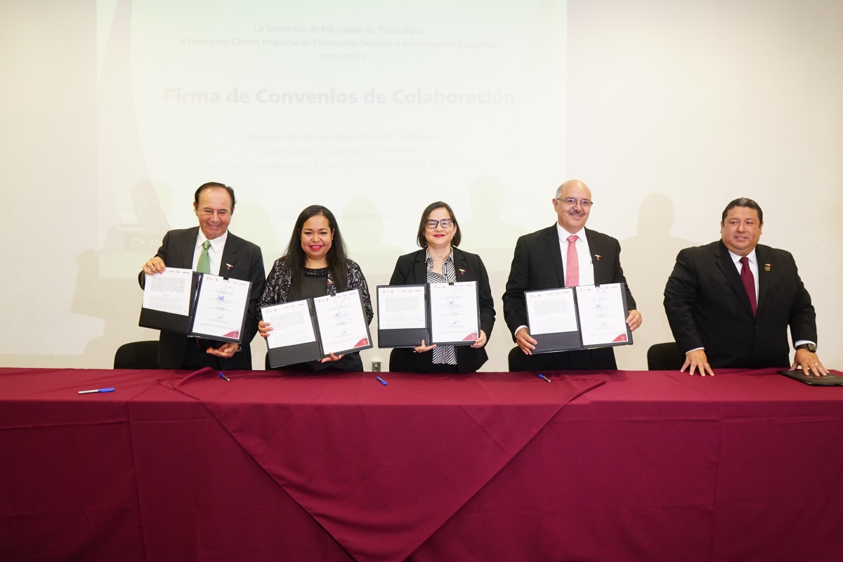 El documento fue firmado por el Dr. Juan Guillermo Mansur Arzola, Director General del Instituto Tamaulipeco de Becas, la Dra. Amelia Castillo Morán, Rectora del Centro Regional de Formación Docente e Investigación Educativa, por el Dr. Rubén Ely Ramírez Rivas, Director General del Colegio De Bachilleres del Estado de Tamaulipas y contando con la firma como testigo de honor de la Secretaría de Educación de Tamaulipas, Lucía Aimé Castillo Pastor.