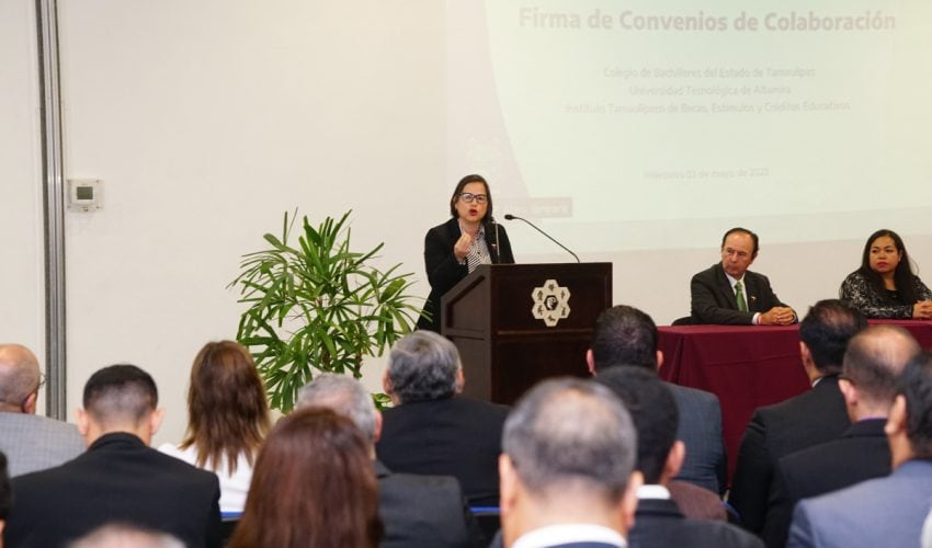 [ssba]La secretaría de Educación de Tamaulipas, Lucía Aimé Castillo Pastor, fue testigo de honor en la firma del convenio entre el COBAT, el CRETAM y ITABEC.