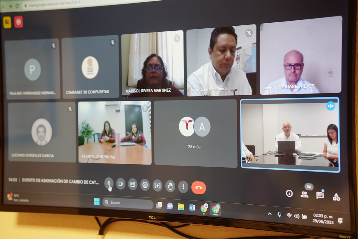 La tarde de este jueves 29 de junio, se llevó a cabo el “Evento de Asignación para la Promoción en el Servicio Docente por Cambio de Categoría del Colegio de Bachilleres del Estado de Tamaulipas, en su modalidad Plantel zona económica III, EMSaD zona económica II”, contando con la asistencia de los C.C. Dr. Rubén Ely Ramírez Rivas, Director General; Lic. Cintya Elizabeth Olmeda Arjona, Jefa del Departamento Jurídico; Mtro. Marco Antonio Valdez Valencia, Director Académico; C.P. Gabriela Dolores Manautou Galván, Directora Administrativa y el Ing. Ramón Guerrero García, Director de Planeación.