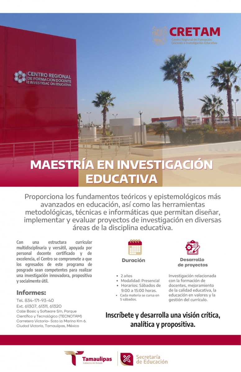 El Centro Regional de Formación Docente e Investigación Educativa (CRETAM) hace una cordial invitación al personal docente y administrativo del COBAT a evaluar la siguiente oferta educativa: