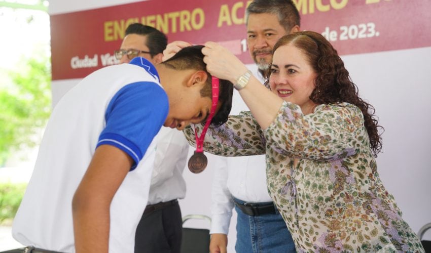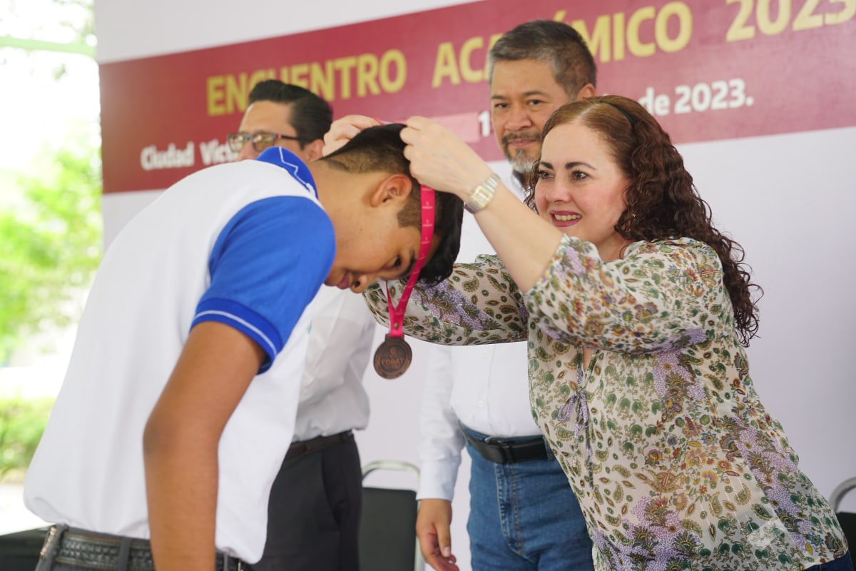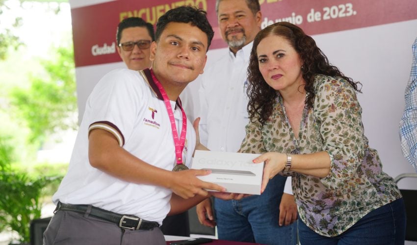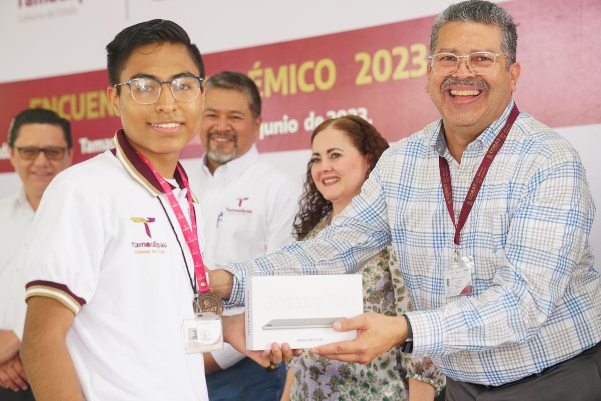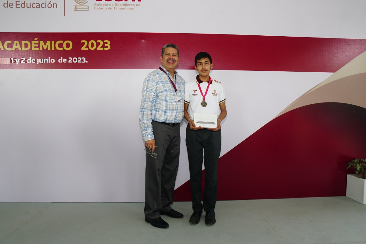 Tras la participación de 280 alumnos en la evaluación de las asignaturas de Física, Matemáticas, Biología, Ciencias Sociales, Química, inglés, Lengua y Comunicación, el pasado viernes 02 de junio se llevó a cabo la clausura y premiación de los ganadores del “Primer Encuentro Académico InterCOBAT 2023”. Los alumnos acreedores a los tres primeros lugares de cada asignatura recibieron medallas y reconocimientos, asimismo los primeros lugares de cada materia recibieron una tablet que les servirá para continuar incentivando su aprendizaje. La ceremonia cívica de clausura estuvo a cargo del Director Académico del COBAT, Lic. Marco Antonio Valdez Valencia, quien estuvo acompañado por los directores de área de la Administración Central del COBAT, mismos que reconocieron el esfuerzo de todos los alumnos participantes y los exhortaron a continuar preparándose día a día, para poder alcanzar sus metas.