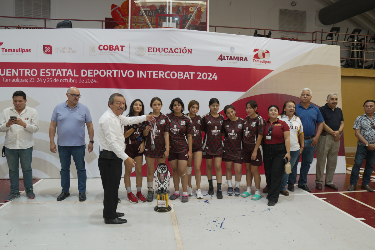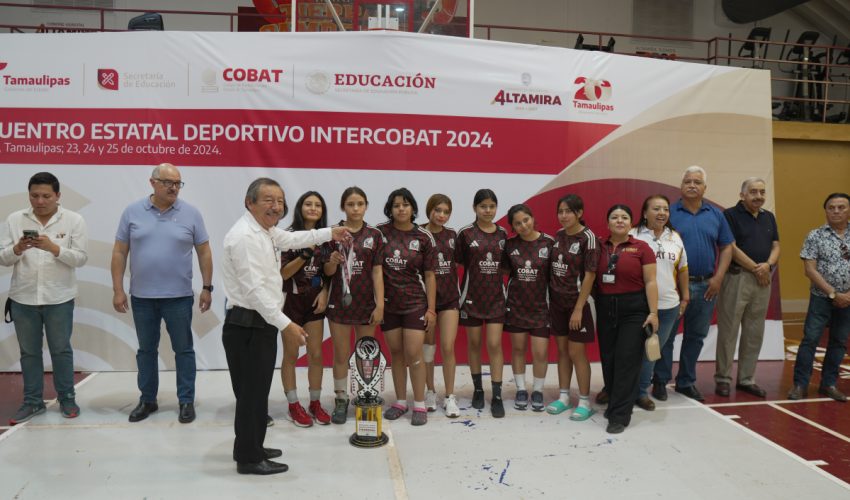 Con la presencia del Director General del Colegio de Bachilleres del Estado de Tamaulipas, Dr. Rubén Ely Ramírez Rivas, los 7 coordinadores de zona y personal auxiliar de la administración central, el pasado viernes 25 de octubre se realizó la ceremonia de premiación y clausura de la edición 2024 del Encuentro Estatal Deportivo Inter COBAT 2024, el evento tuvo lugar en el Auditorio “Reynaldo Castillo” de Altamira, Tamaulipas.